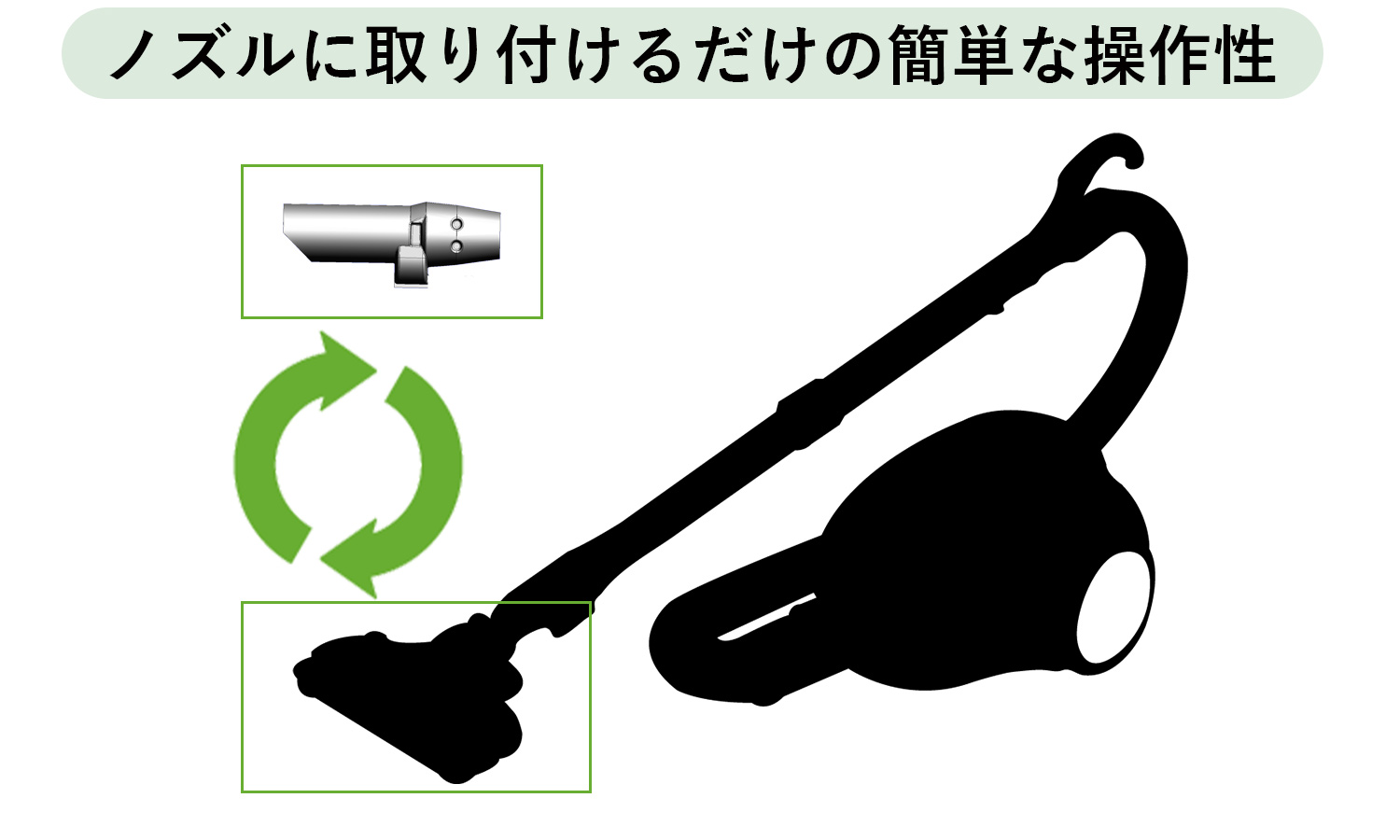家庭用の掃除機のノズルに取り付けるだけの簡単準備。害虫が出てきたときにもサッと準備ができます。
